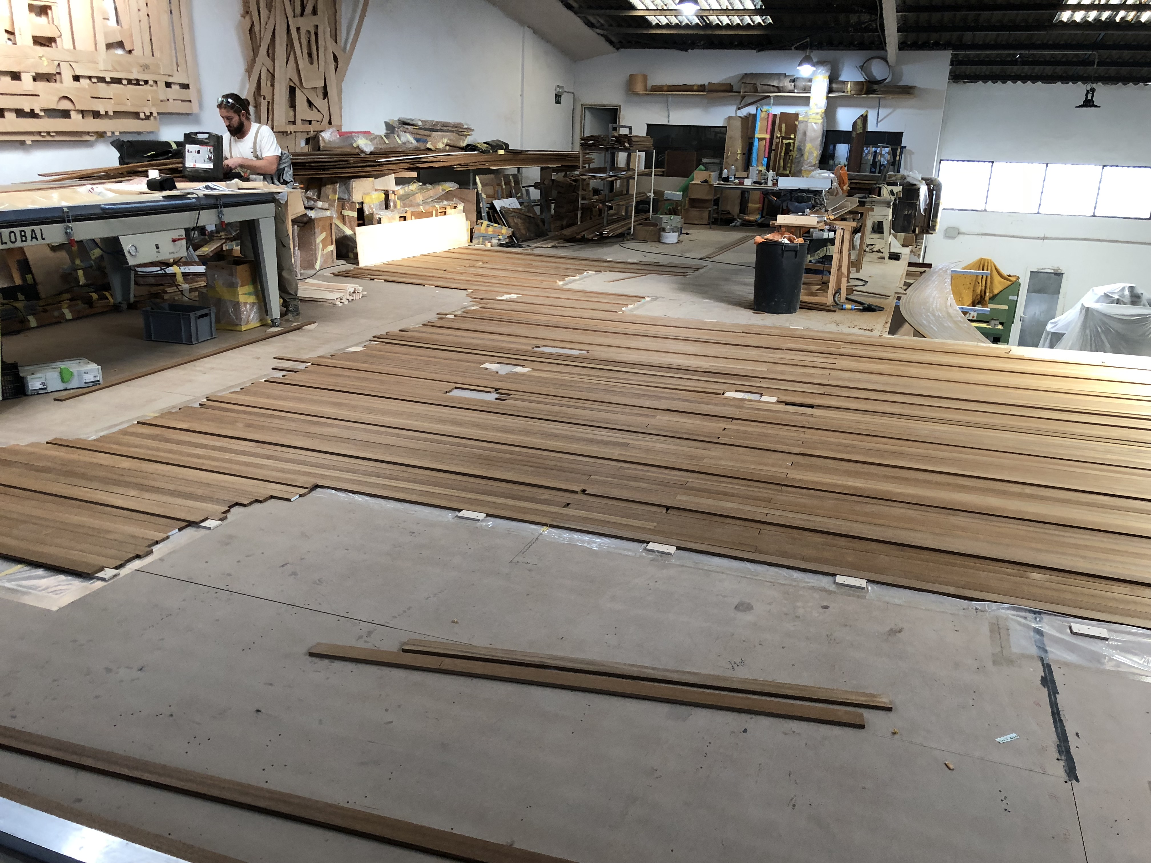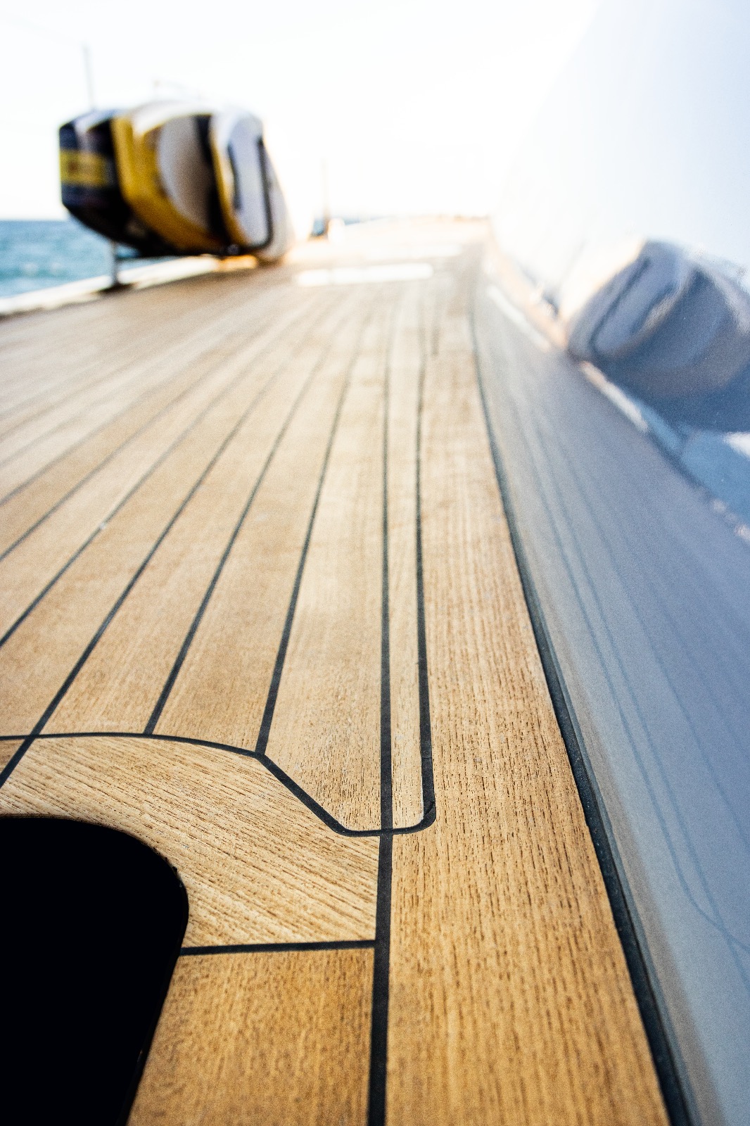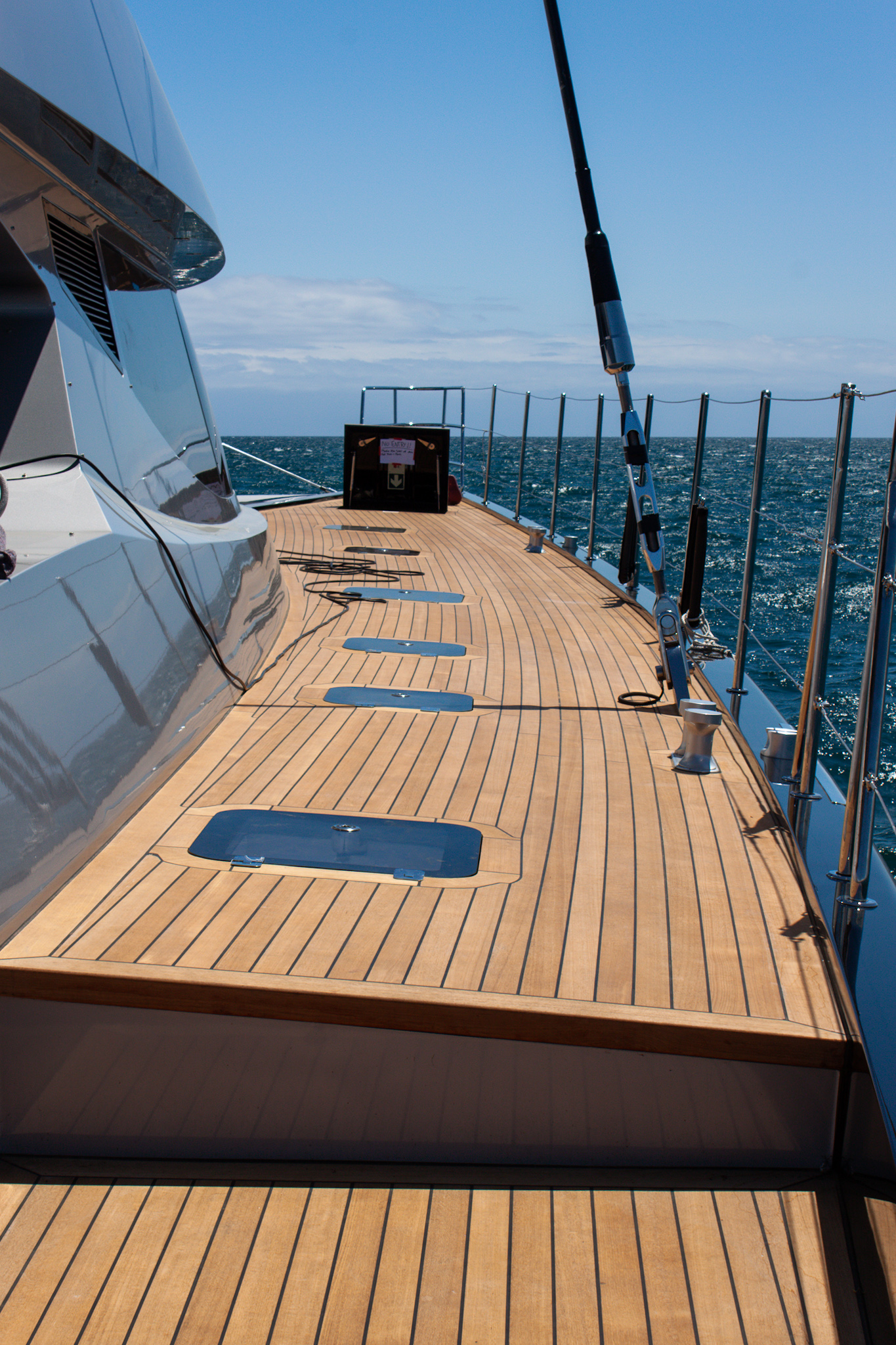Construction and installation of the new teak deck on the catamaran Black Swan – 28m yacht built by Blubay Yachts.