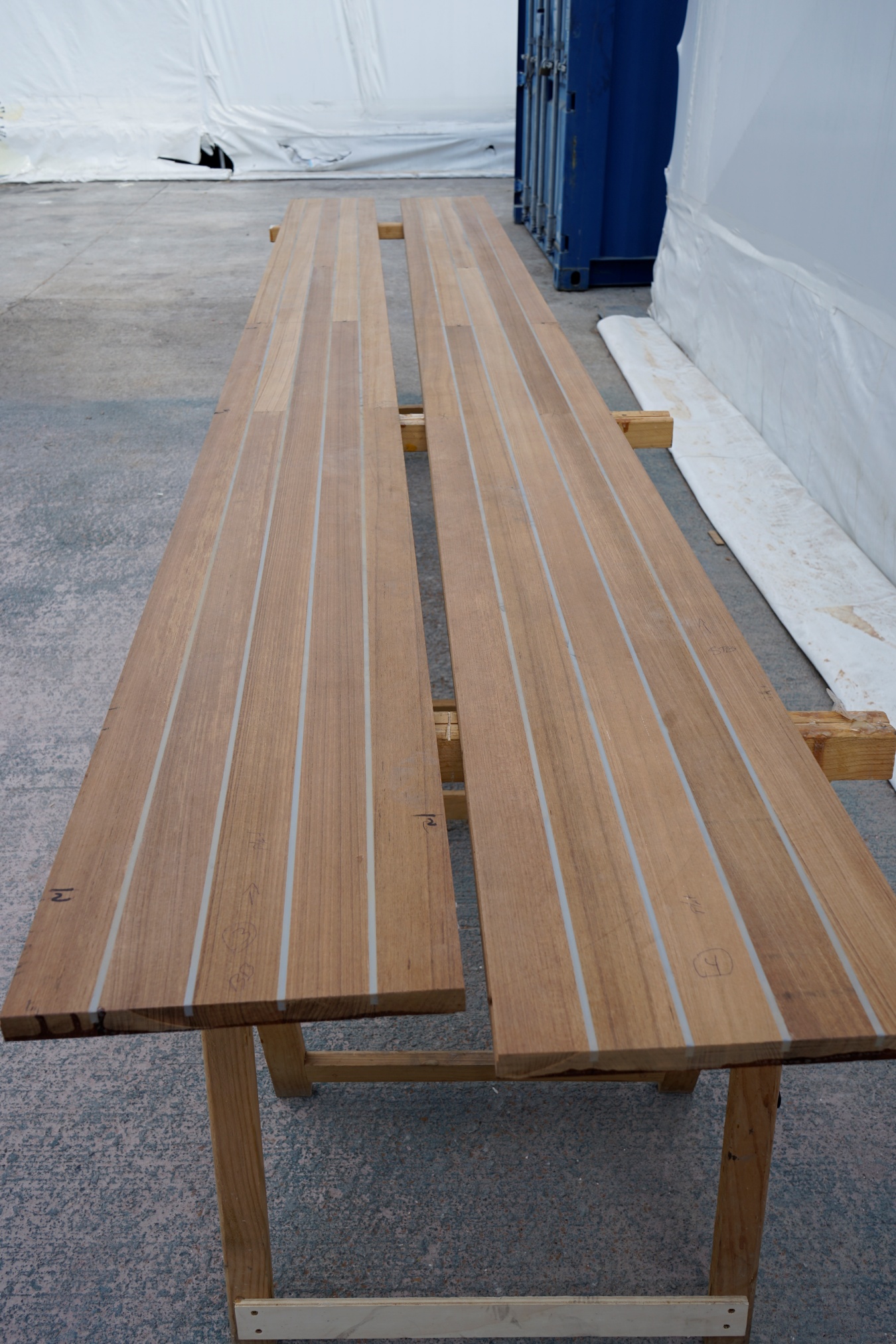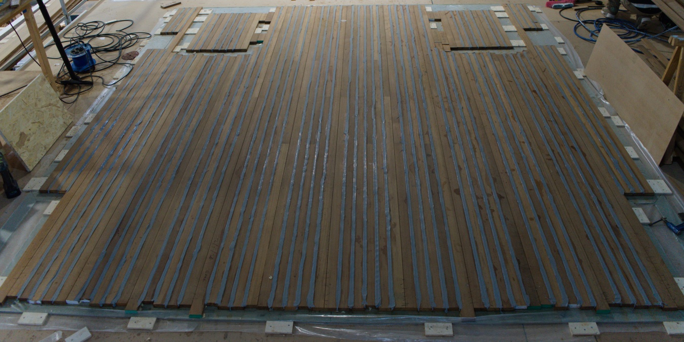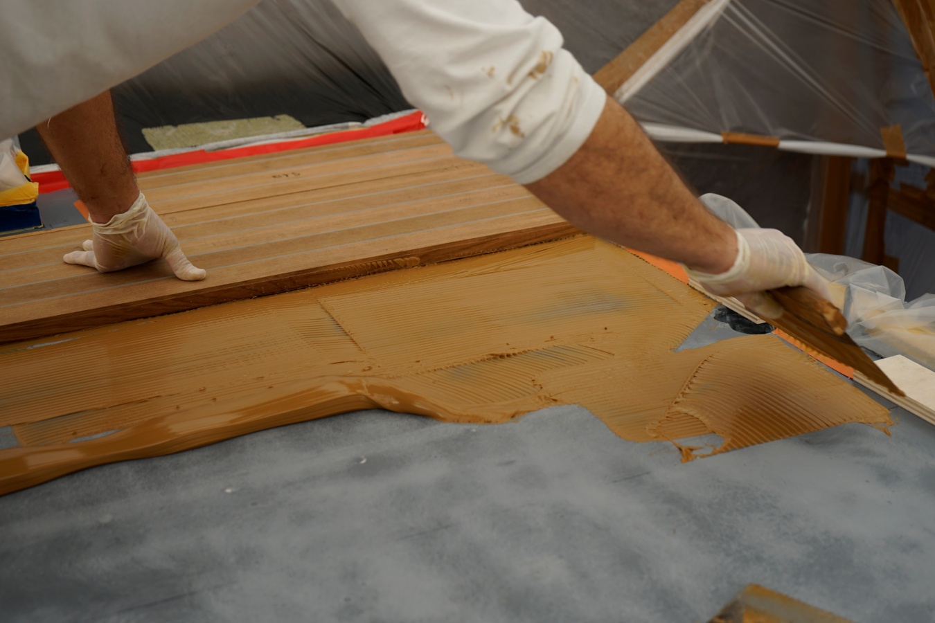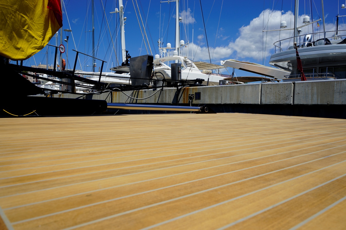 Construction and installation of teak deck on the bathing platform of S/Y Nirvana Formentera – 53m yacht built by Vitters.
