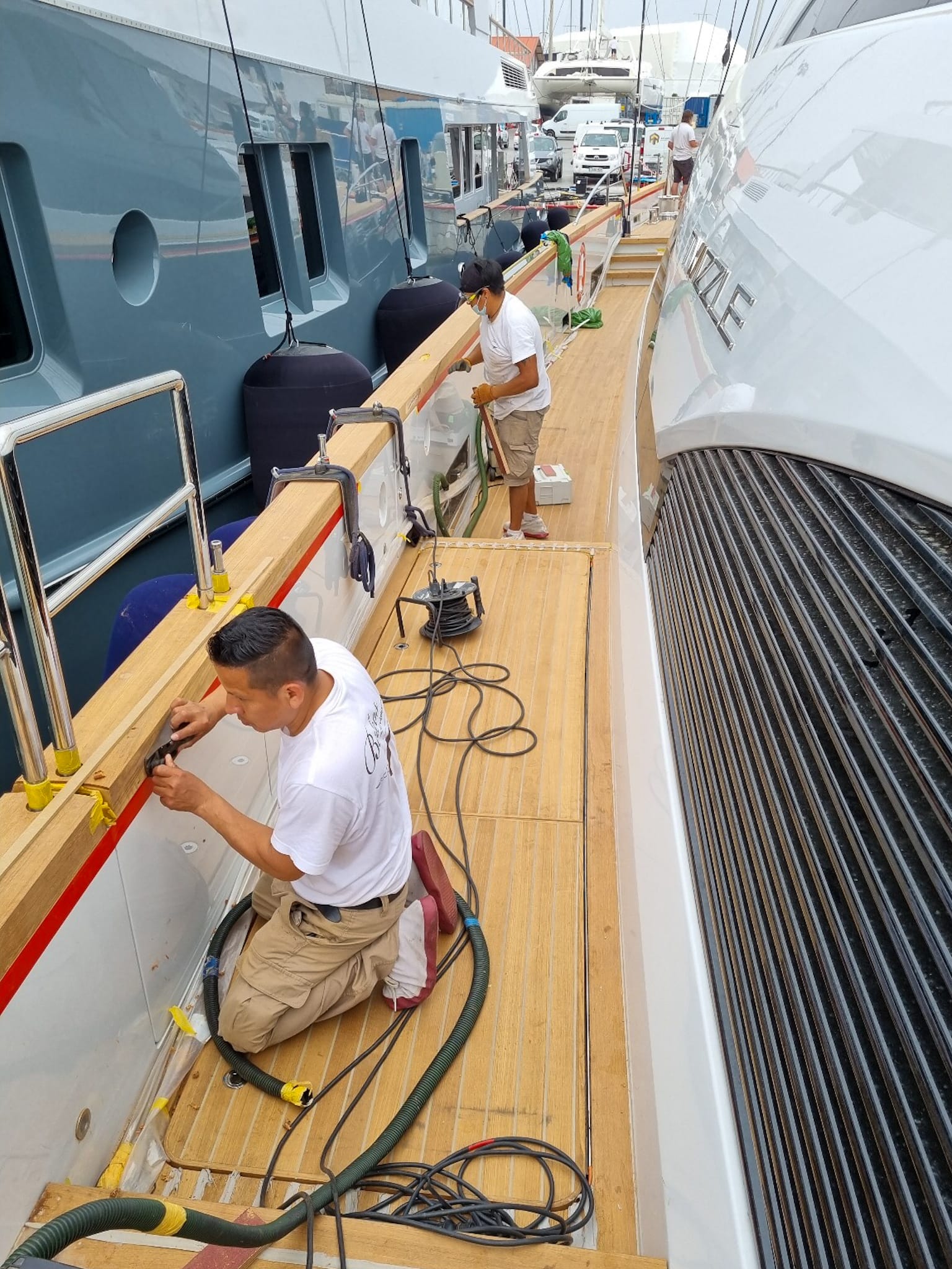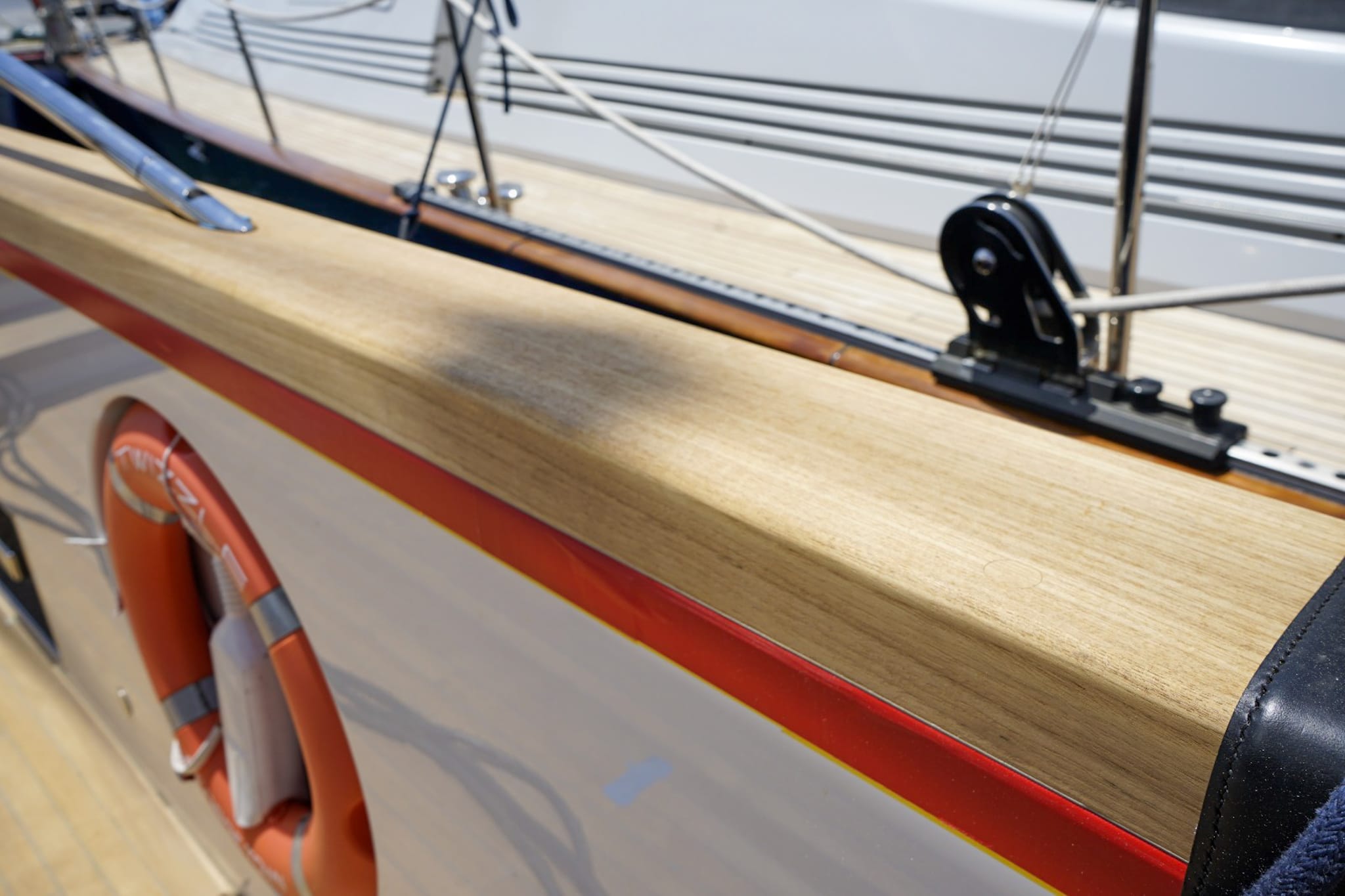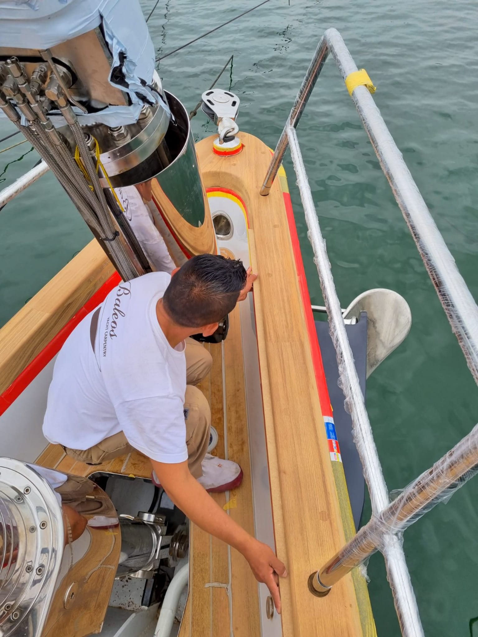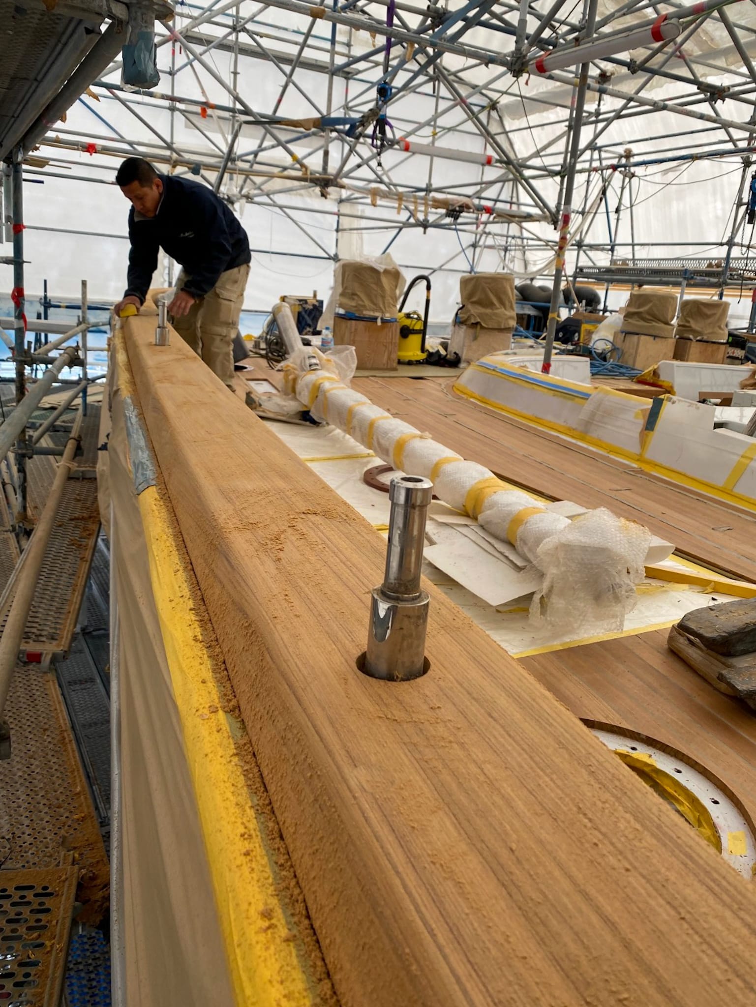 Construction and installation of the teak cap rail on board of S/Y TWIZZLE, a 57.5 meter long sailing yacht built in 2010 by the Dutch shipyard Royal Huisman.