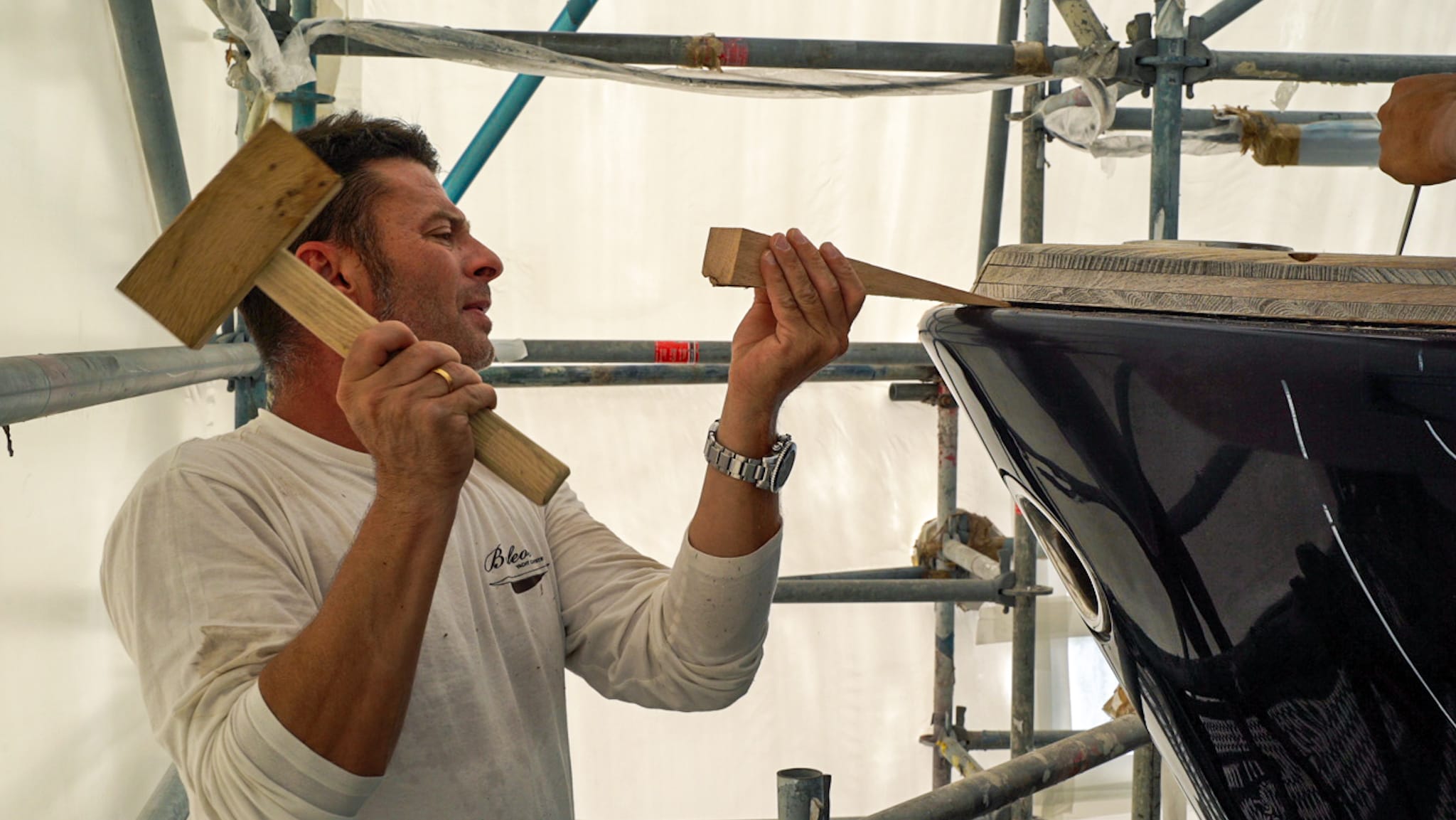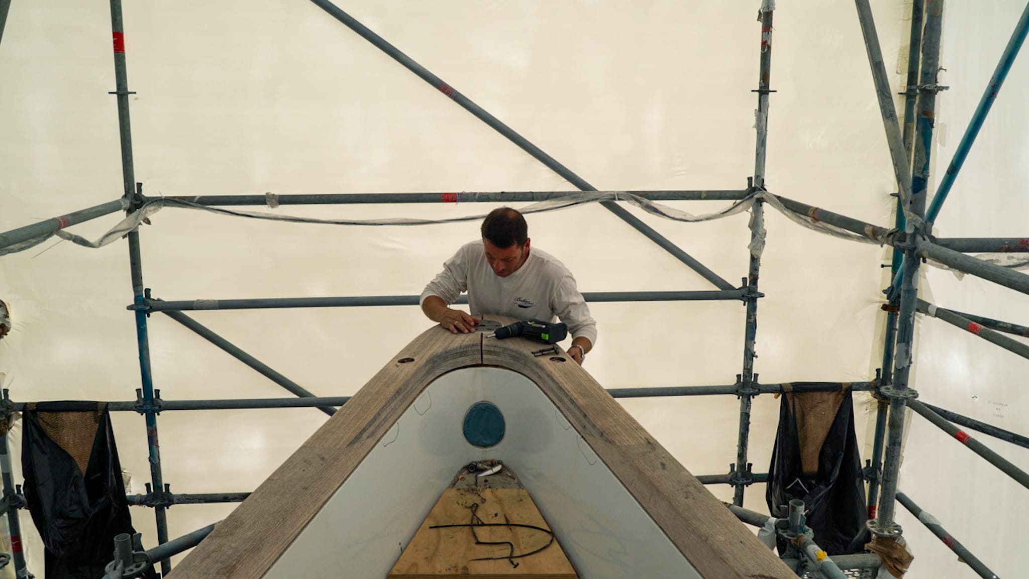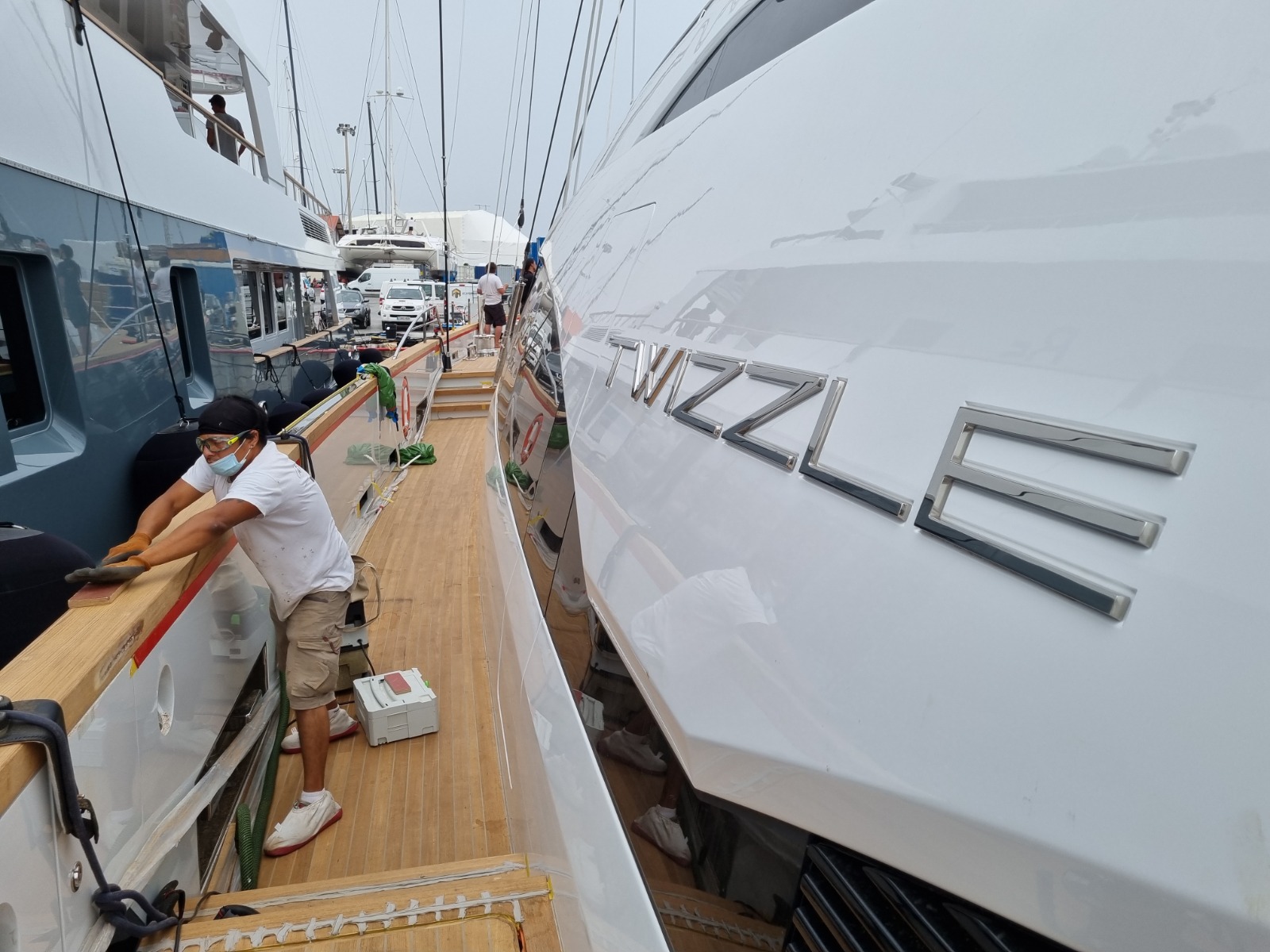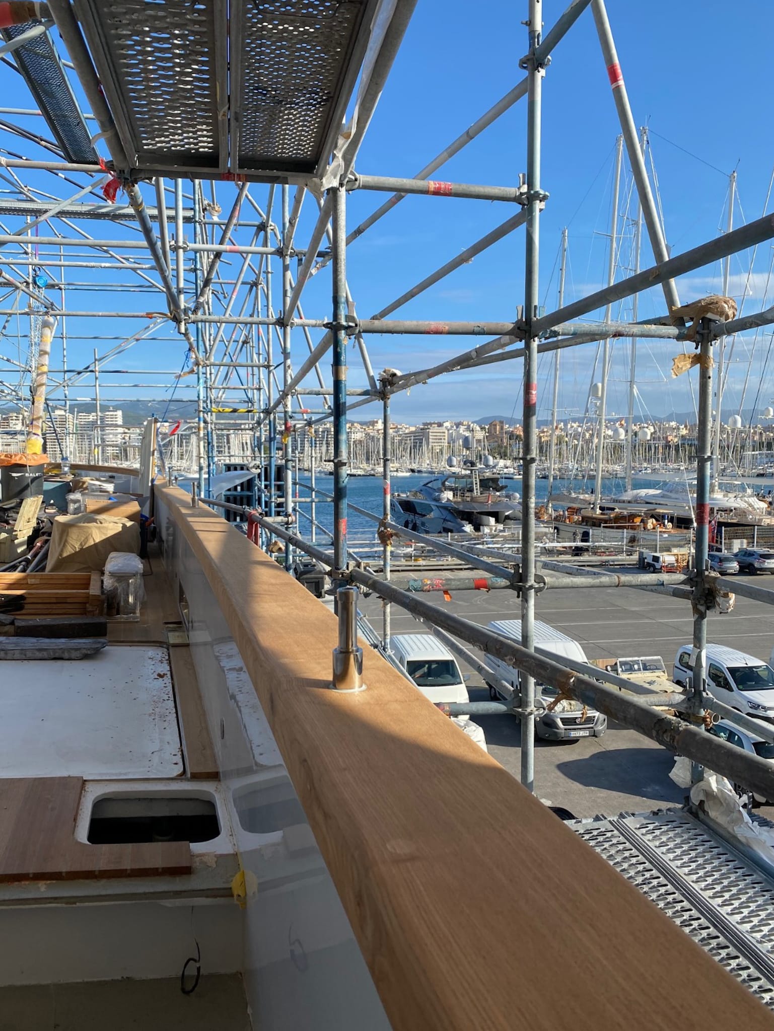 Construction and installation of the teak cap rail on board of S/Y TWIZZLE, a 57.5 meter long sailing yacht built in 2010 by the Dutch shipyard Royal Huisman.